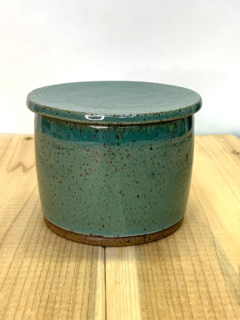 Keep your butter soft, fresh, and ready to spread with this handmade stoneware butter keeper, crafted from speckled clay and finished in a rich teal glaze. Wheel-thrown in Columbus, Georgia by Joe Dallas, each piece is individually formed and glazed by hand, giving every butter keeper subtle variations that make it truly one of a kind.