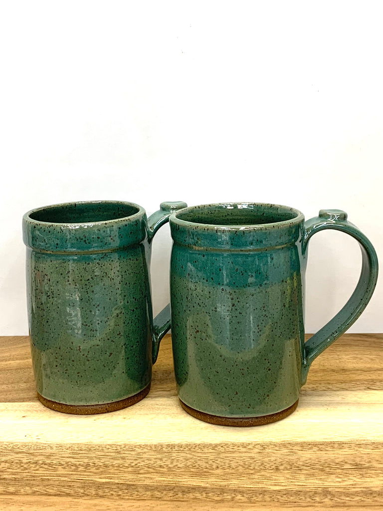Enjoy your favorite coffee or tea in this handmade stoneware mug, crafted from speckled clay and finished in a rich teal glaze. Wheel-thrown in Columbus, Georgia by Joe Dallas, each mug is individually formed and glazed by hand, giving every piece its own subtle variations and character.