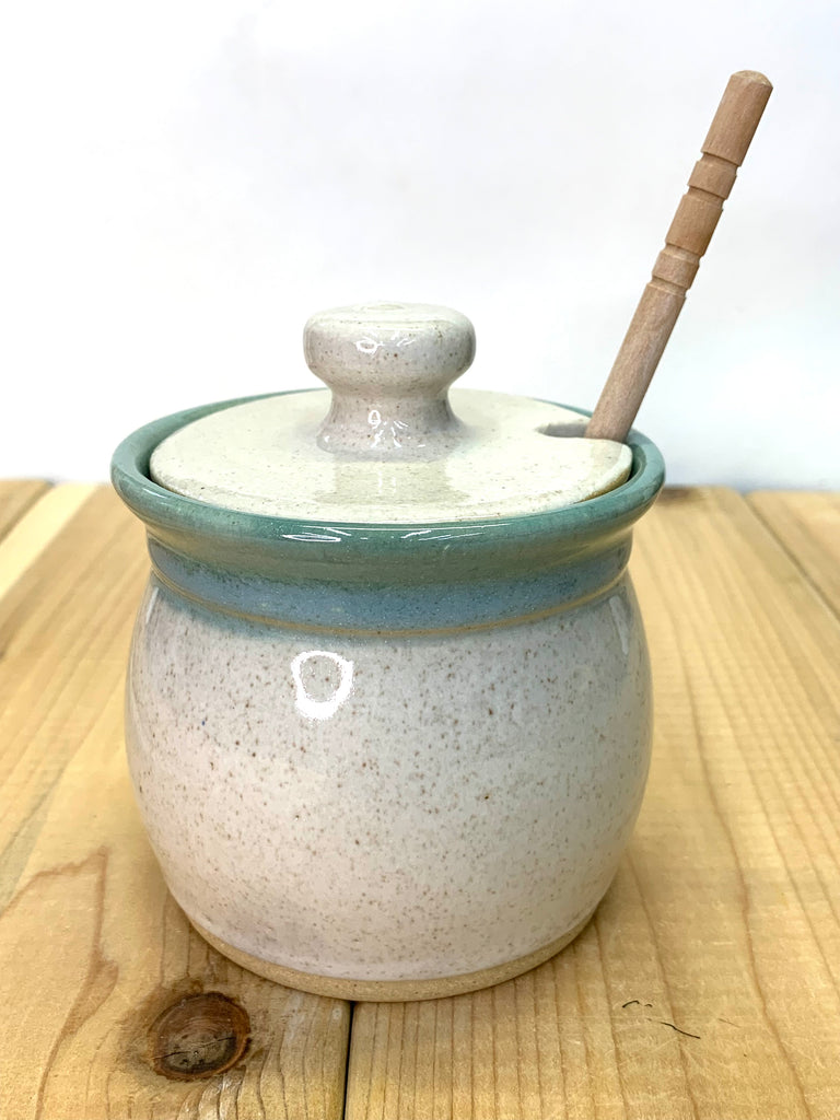 Honey Jar in Spiced Cream and Teal glaze