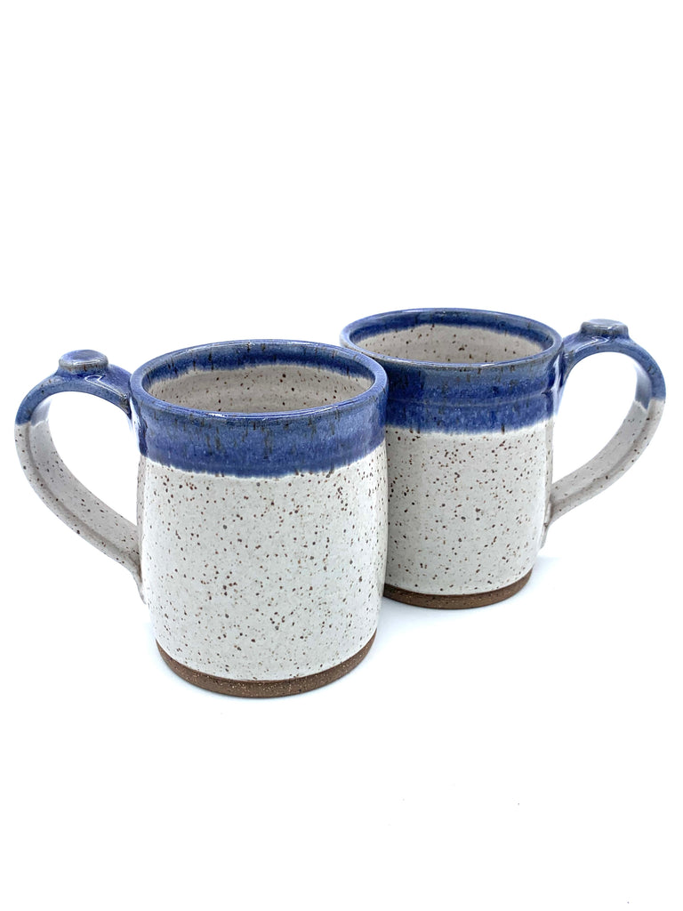 Mug in speckled clay with Aspen White and Blue glaze